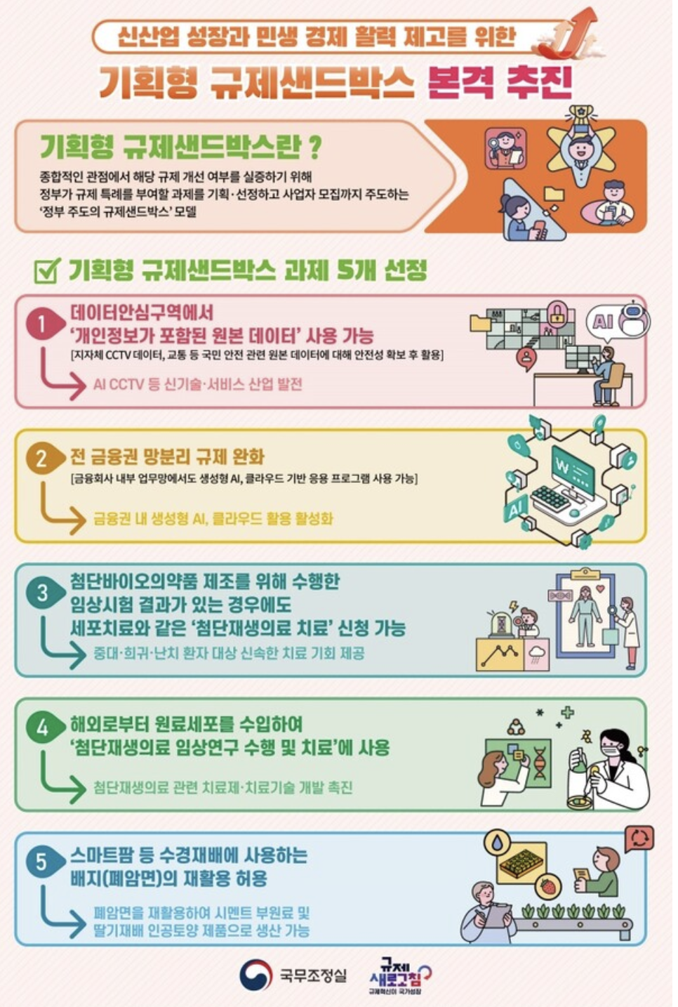 특히, 기존 규제샌드박스가 기업이 요청한 개별 규제의 특례만 인정하는 방식이었다면, 이번에 추진되는 '기획형 규제샌드박스'는 정부가 직접 과제를 기획하고 추진하는 방식으로 운영됩니다.