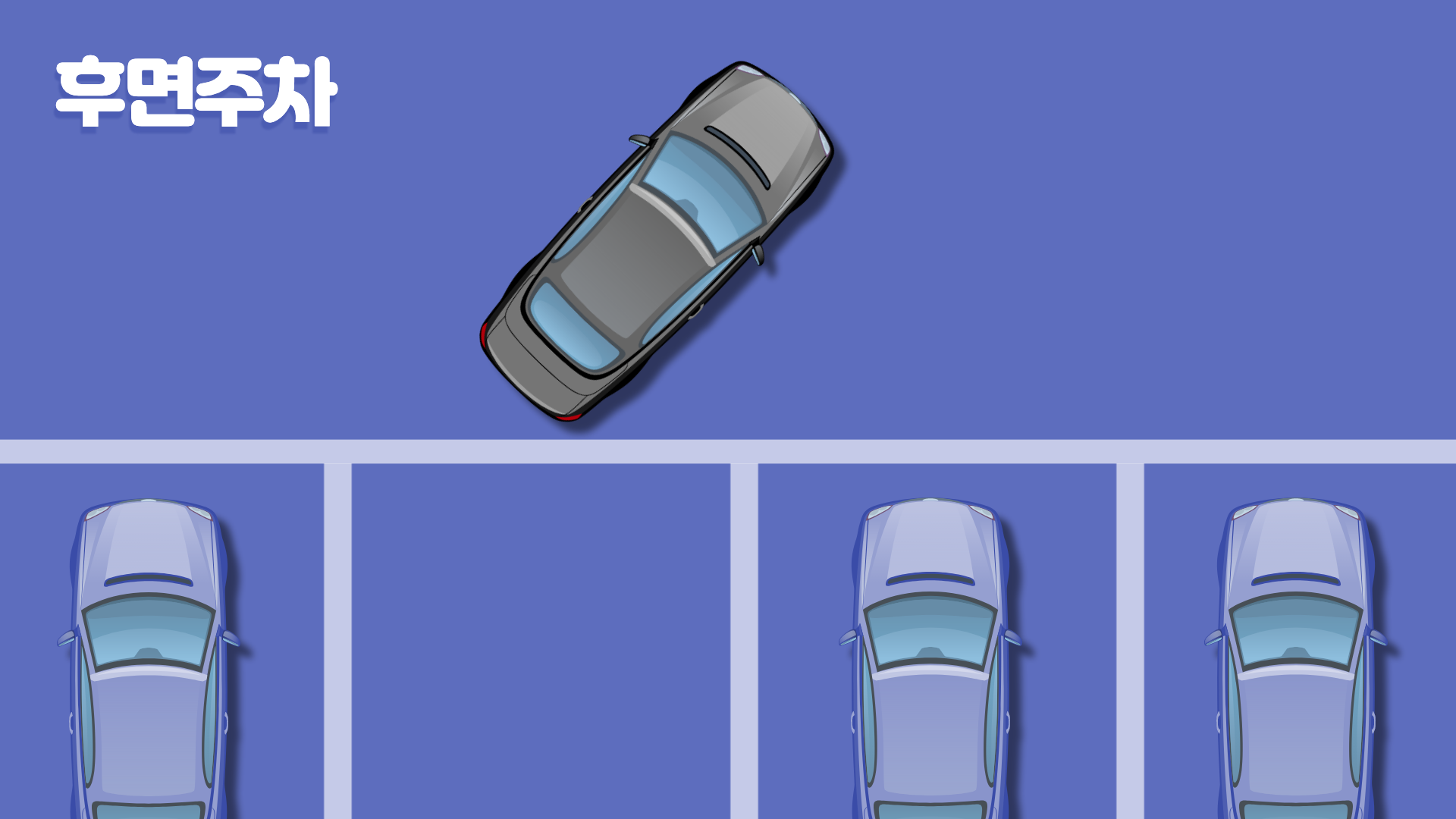 5) 전진 주차는 거의 한 번에 넣기가 어렵기 때문에 주차 공간으로 진입하던 중간 다시 후진해야할 일이 생길 수 있는데, 이때에는 핸들을 정중앙에 놓고 후진해야 양쪽 옆 차와 부딪히지 않습니다.