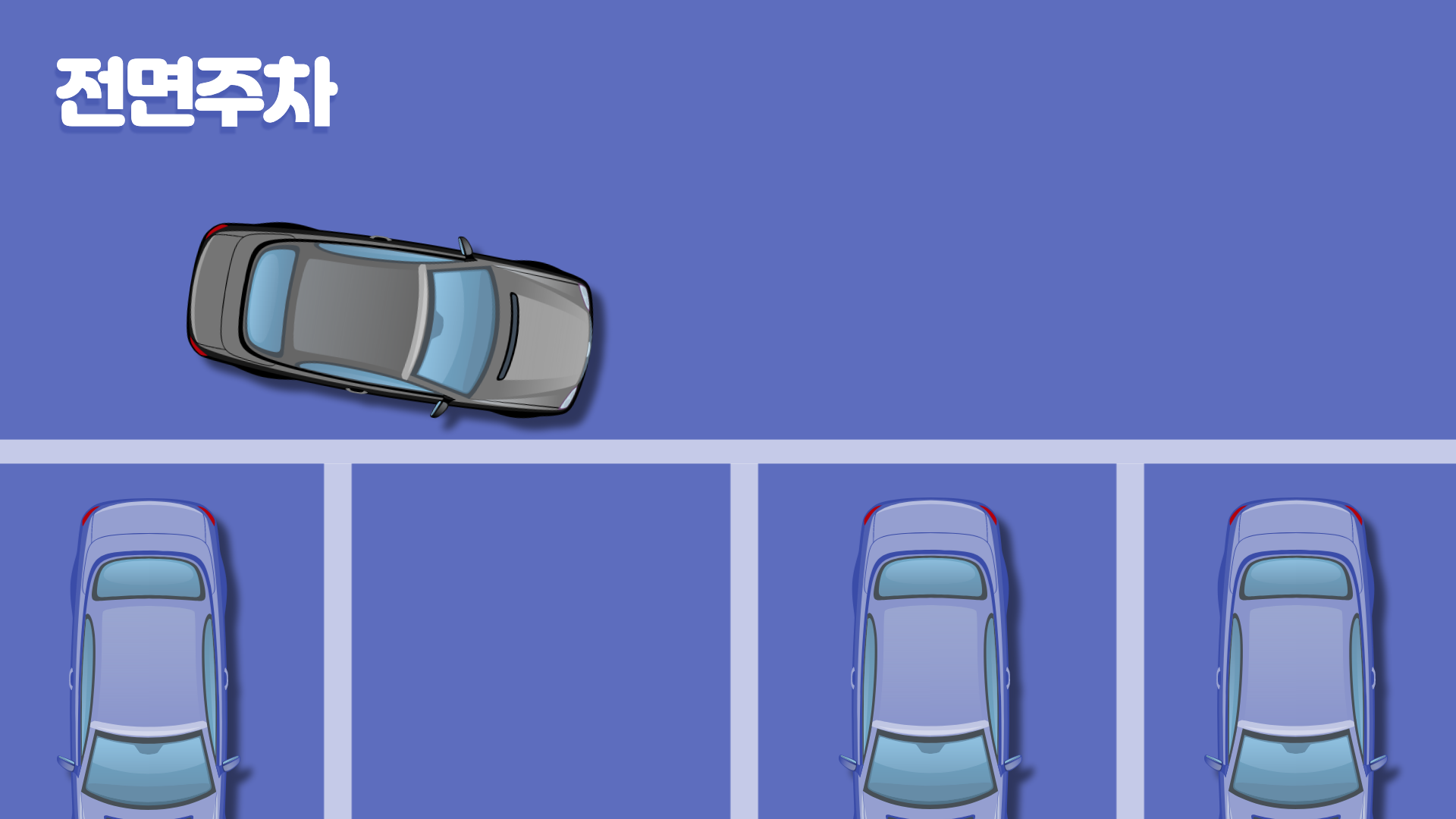 1) 주차할 공간의 앞 차량과 평행으로 1m 정도 간격을 두고 진입합니다. 앞 차량과 내 차의 뒤 범퍼가 일직선상에 놓였다고 생각되면 정지합니다.