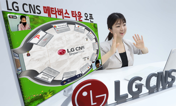 LG CNS는 메타버스를 활용한 고객 접점 공간 'LG CNS 타운(메타버스 타운)'을 개설하여 24시간 언제든 고객이 방문해 자사의 최신 서비스를 살펴볼 수 있는 공간을 메타버스 세상 속에 구축했습니다.