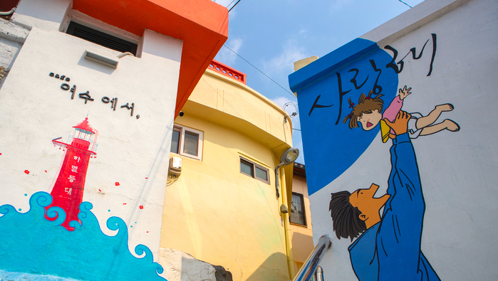 총 7개의 구간으로 나뉘어 마을 벽면에 다양한 그림들이 칠해져 있습니다. 여러 개의 구간 중 가장 유명한 곳은 허영만의 식객 만화 갤러리 골목이라고 하니 놓치지 말고 방문해보세요!
