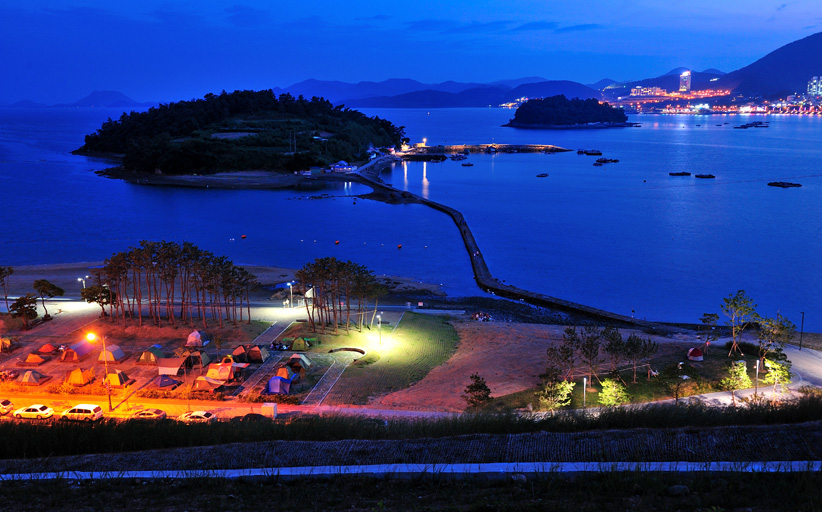 장도를 찾은 방문객들은 장도에 입장하기 앞서 웅천친수공원을 만나게 됩니다. 웅천친수공원은 여수의 청정 해역을 즐기며 캠핑장도 이용할 수 있는 시민공원인데요. 여름철, 전국에서 찾아온 피서객들과 여수 시민에게 많은 사랑을 받고 있는 장소이기도 합니다.